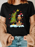 Women's Casual Christmas Tree And Dog Print T-Shirt, Round Neck, Short Sleeve, Cartoon Pattern,Regular Fit Tee For All Seasons